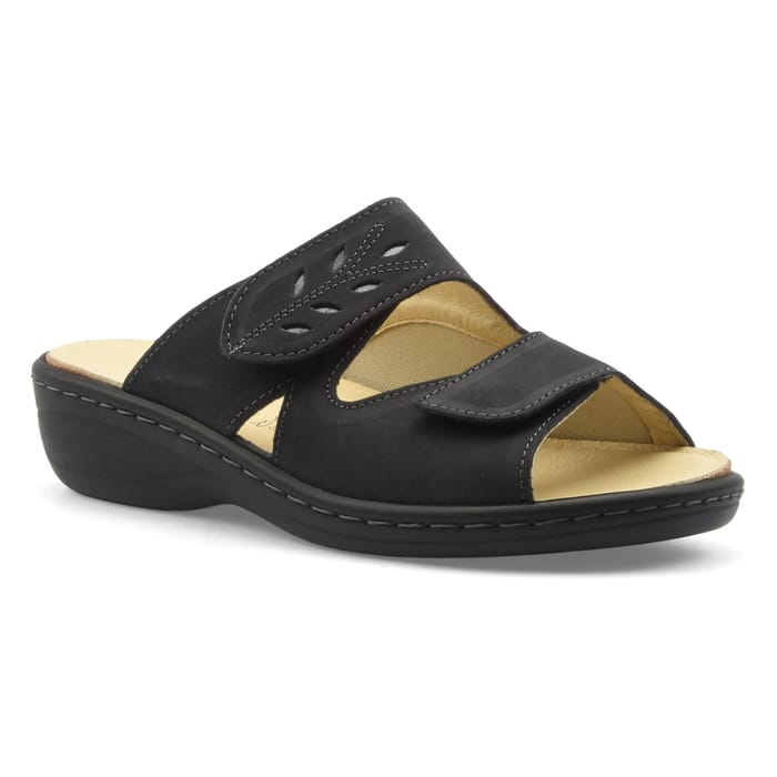 Die Sandalen Amia von Belvida verbinden Eleganz und Funktionalität für den Alltag, den Sommer oder das Meer. Entworfen in einem lässigen Stil, zeichnen sie sich durch ihre Nubuk und Stretch-Tops, bietet sowohl Weichheit und Stretch für eine perfekte Passform. Das Lederfutter und die abnehmbare Ledersohle sorgen für optimalen Komfort und erhöhte Atmungsaktivität, ideal für lange Tage. Die Gummisohle, dick und durch eine periphere Naht verstärkt, sorgt für eine erhöhte Haltbarkeit und bringt eine bemerkenswerte Leichtigkeit. Der 40 mm Absatz verleiht einen Hauch von Stil bei gleichzeitiger natürlicher Stabilität. Erhältlich in marineblau, kombiniert dieses Leder Maultier Nüchternheit und Modernität, perfekt für die Sublimierung der einfachsten als auch die am meisten gekleideten Outfits. Eine stilvolle Wahl für diejenigen, die sowohl Stil als auch Alltagskomfort suchen. -