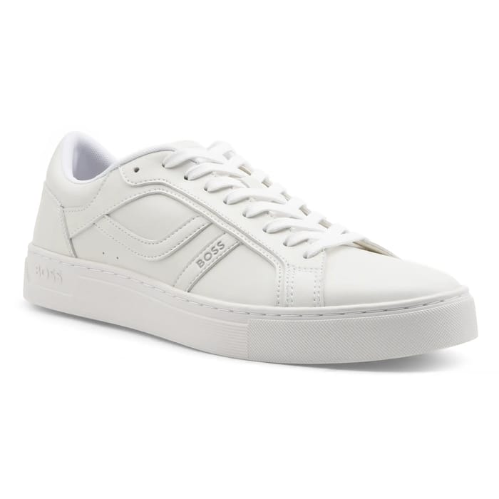 Diese BOSS Rhys Tenn Sneaker verbinden zeitlose Eleganz mit Vielseitigkeit für den Alltag. Entworfen in einer langlebigen Synthetik, passen sie dank ihrer präzisen Passform perfekt in die Form des Fußes und bieten dank eines Textilfutters und einer abnehmbaren und weichen Innensohle optimalen Komfort. Ihr minimalistisches Design, gekennzeichnet durch die BOSS-Signatur, die auf jeder Seite der Mitte des Schuhs eingraviert ist, verleiht jedem Schritt einen raffinierten Touch. Die dezente und dennoch robuste Gummisohle sorgt für erhöhte Haltbarkeit, ideal für den täglichen Pendelverkehr, ob im Büro oder auf lässigeren Ausflügen. Die seitlichen Perforationen sorgen für eine hervorragende Belüftung, während die gepolsterte Zunge einen zusätzlichen Hauch von Komfort verleiht. Erhältlich in reinem Weiß fügen sich diese Sneaker in einen klassischen Look sowie ein moderneres Outfit ein, was sie zu einem Must-Have für alle Liebhaber zeitlosen Stils macht. -