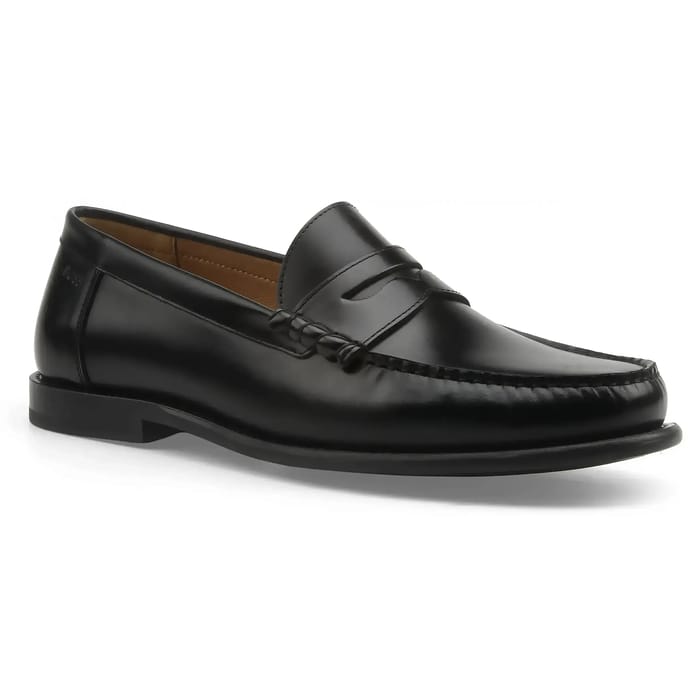Diese klassischen Tevan Laiber der Marke BOSS verbinden zeitlose Eleganz mit stilvollem Komfort, um jedes Outfit zu verbessern. Entworfen in hochwertigem Leder, bieten sie eine glatte und gepflegte Textur, die durch sorgfältige Nähte, die ihre handwerkliche Handwerkskunst betonen, verbessert wird. Das charakteristische geflochtene Band, oder *penny keeper*, bringt eine unverwechselbare Note bei der Stärkung der Fußstütze. Ihre tiefschwarze Farbe, sowohl nüchtern als auch vielseitig, passt perfekt in eine formelle Garderobe oder zu besonderen Anlässen, ob für ein schickes Büro, einen eleganten Abend oder ein professionelles Event. Der Innenraum ist mit einem weichen, atmungsaktiven Textilfutter verkleidet und sorgt für eine angenehme Passform auch nach langen Stunden. Die robuste und langlebige Gummisohle sorgt für optimale Stabilität, während die textile Innensohle das Paket für dauerhaften Komfort komplettiert. Durch die Kombination von Raffinesse und Praktikabilität verkörpern diese Laiber die Exzellenz des BOSS-Stils, bei dem jedes Detail auf Leistung und Unterscheidung ausgelegt ist. -