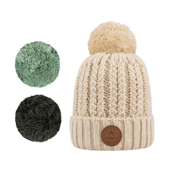 Die MOSCOW MULE Beanie von der Marke Cabaia ist ein funktionales und lässiges Modeaccessoire für Winter- und Outdoor-Aktivitäten. Hergestellt aus 90% Acryl und 10% Polyamid, ist diese Kappe warm und schützt den Kopf vor dem Wetter. Sein Stil ist einfach und elegant, mit einem Strickseil oben und gerippten Streifen an der Unterseite. Ein brauner Lederpatch zeigt das Logo der Marke Cabaia, umgeben von einem Emblem aus Bergen und Wäldern. Der Hut ist mit zwei Pom-Pom-Optionen erhältlich: eine in grüner Wolle und eine andere in schwarzer Wolle. Die beige Farbe dieser Mütze macht sie zu einem perfekten Accessoire für kalte Tage, während sie lässig genug ist, um jeden Tag getragen zu werden. -