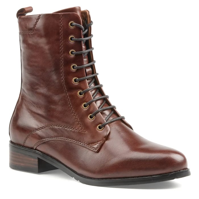 FELICITY, Schnürsenkelstiefel der Marke Everybody, bietet einen lässigen und robusten Stil, perfekt für Herbst und Winter. Diese Stiefel wurden für Outdoor-Aktivitäten entwickelt und verfügen über hochwertiges Leder, um eine optimale Unterstützung zu gewährleisten. Das synthetische Wollfutter sorgt für Komfort den ganzen Tag über, während die Gummisohle einen soliden Schutz bietet. Die 30 mm Fersen bieten einen leichten Anstieg, ohne Kompromisse bei der Stabilität. Die Lederstiefel Details, wie Lederschrauben und Metall Schnürsenkel, fügen einen Hauch von Raffinesse. Die braune Farbe ist ideal für Arbeits- oder Outdoor-Ausflüge. -