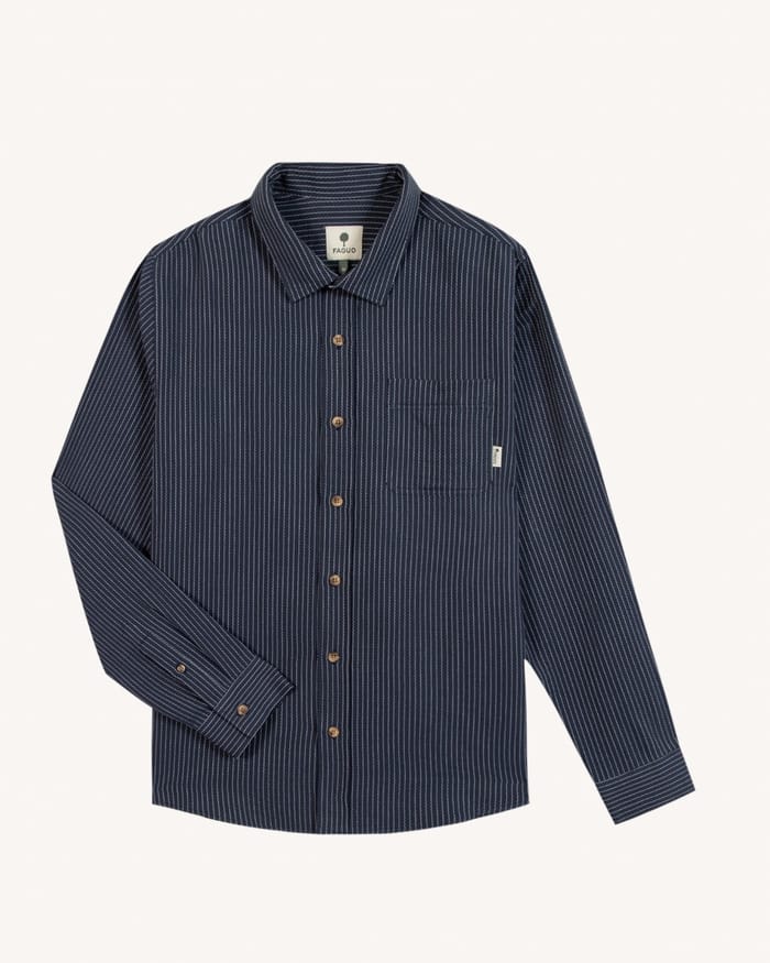 Das M's SIGNY SHIRT WOVEN Shirt der Marke Faguo vereint zeitlose Eleganz mit dezenter Raffinesse, um jedes formale Outfit zu verbessern. Entwickelt für professionelle oder zeremonielle Anlässe, zeichnet sich dieses marineblaue langärmelige Hemd durch sein schlichtes Design und gepflegte Details aus. Die dünnen weißen vertikalen Streifen, fast unmerklich, bringen einen subtilen Hauch von Moderne, ohne die Nüchternheit des Stils zu verändern. Der spitze Kragen und braune Holzknöpfe, sowohl diskret als auch elegant, verbessern das schicke Aussehen des Raumes, während das Vorhandensein einer Brusttasche auf der linken Seite praktische Funktionalität hinzufügt. Gemacht, um Komfort und Leistung zu kombinieren, atmet dieses Shirt dank seiner angepassten Zusammensetzung und sorgt für ein Gefühl von Leichtigkeit auch an den längsten Tagen. Seine untersuchte Passform, sowohl strukturiert als auch flüssig, umarmt die Silhouetten präzise und bietet eine tadellose Passform für einen immer einwandfreien Look. Perfekt für Büro- und formelle Veranstaltungen, verkörpert dieses Shirt die perfekte Balance aus Raffinesse und Vielseitigkeit, für Stil, der durch die Jahreszeiten geht, ohne jemals altmodisch zu werden. -
