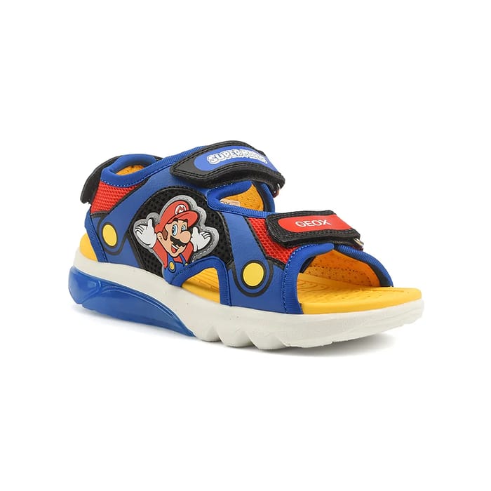 Die CIBERDRON Sandalen von Geox sind für optimalen Komfort und Leichtigkeit ausgelegt. Diese flachen Sandalen sind aus Synthetik und Textil, mit einem Textilfutter für ein angenehmes Tragegefühl. Die synthetische Innensohle sorgt für Schutz und Unterstützung der Füße. Die Gummisohle bietet Dämpfung und Flexibilität für den Alltag. Die CIBERDRON Sandalen sind in mehreren bunten Farben erhältlich, geeignet für eine Reihe von Freizeit- und Sommerprodukten. Sie sind ideal für Strände, Feiertage und sonnige Tage. Kinder werden die CIBERDRON Sandalen lieben, die mit einem Charakter aus dem Mario-Franchise versehen sind, mit blauen und roten Streifen von Klettverschluss. Die gelbe Einlegesohle und die geschmückten Bänder von "SUPER" und "GEOX" verleihen einem einen Hauch von Spaß und Persönlichkeit. Die weißen Dämpfungselemente auf der Sohle sorgen für optimalen Komfort der Füße. Die CIBERDRON Sandalen von Geox kombinieren Mode, Komfort und Innovation zu einem einzigartigen und attraktiven Produkt. -