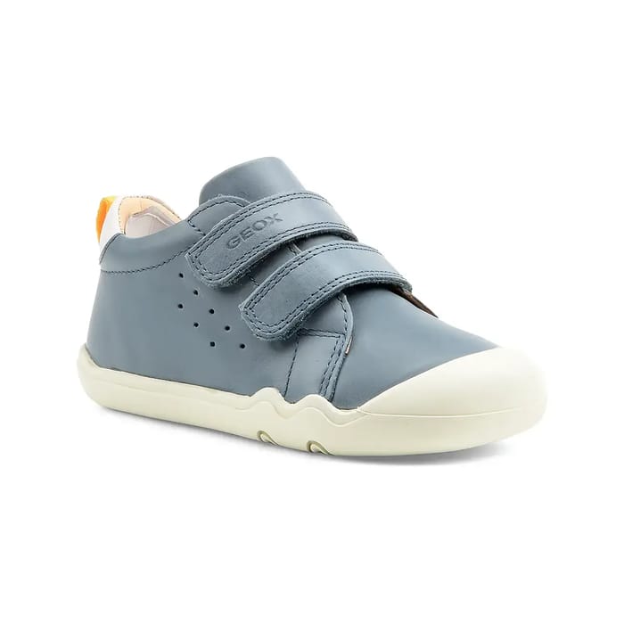 Die StepPIEUP Stiefeletten von Geox kombinieren Eleganz und Komfort zu einer idealen Lösung für den Alltag. Aus weichem und strapazierfähigem Leder gefertigt, passen sie dank zwei verstellbaren Klettbändern perfekt in den Fuß und sorgen so für eine optimale Unterstützung. Das Innenfutter aus Leder sowie die Innensohle aus Leder tragen zu dauerhaftem Komfort bei, während die strapazierfähige Gummiaußensohle für eine bemerkenswerte Haltbarkeit sorgt. Das Design in Leder-Basketball, mit schlanken Linien, ist Teil einer schicken und vielseitigen Ästhetik, perfekt für alle Outfits geeignet. Ein Hauch Orange auf der Ferse bringt diesem hellblauen Modell eine frische Note. Mit einer atmungsaktiven Sohle garantiert dieser Geox-Schuh Wohlbefinden und Leichtigkeit ab dem ersten Schritt, dank der technologischen Innovationen, die den Ruf der Marke ausmachen. -