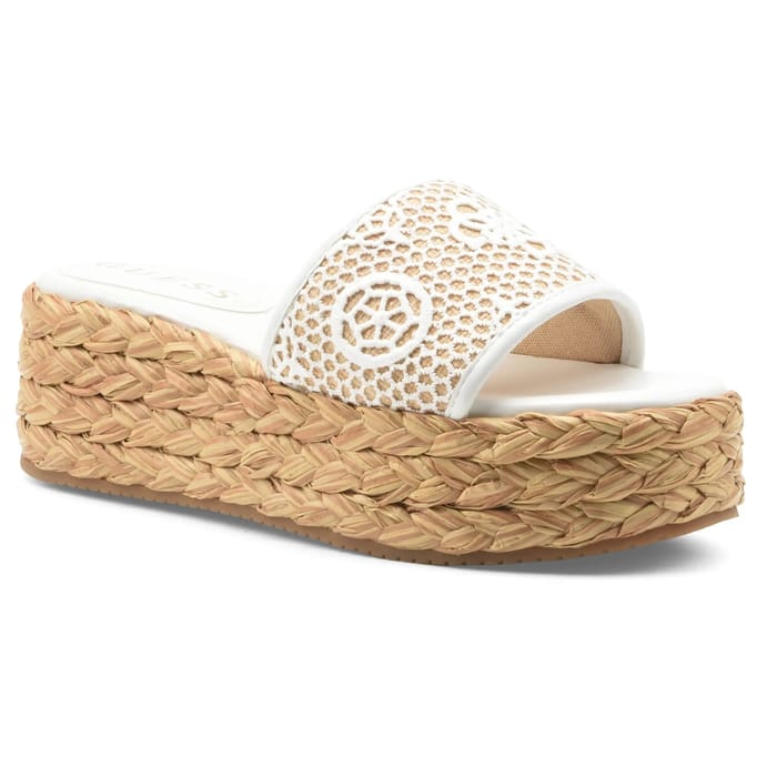 Die BINATA Maultiere der Marke Guess verbinden Eleganz und Komfort für Sommerausflüge oder Momente der Entspannung auf täglicher Basis. Entworfen aus Synthetik und Textil zeichnen sich diese Maultiere durch ihren zeitlosen Stil und ihren lässigen Flair aus. Ihre Gummisohle, verstärkt durch einen 60 mm Absatz, bietet diskrete Stabilität und bewahrt gleichzeitig die Leichtigkeit des Modells. Das Textilfutter und die synthetische Innensohle sorgen für eine angenehme Passform, auch nach langen Stunden. Ihre reine weiße Farbe und elegantes Design, gekennzeichnet durch subtile Details wie kreisförmige Muster und elegante Schnitte, machen es zu einem Muss, um Sommer-Outfits zu sublimieren. Perfekt für den Alltag oder lässigere Anlässe, verkörpern diese Maultiere die Balance zwischen Mode und Wohlbefinden. -