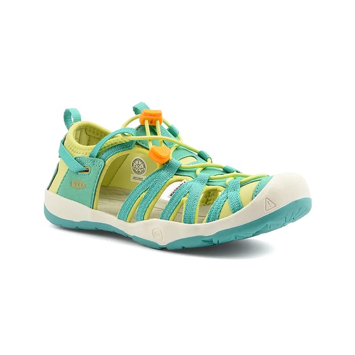 Die Moxie Sandalen der Marke Keen sind für sonnige Sommertage konzipiert. Diese flachen Sandalen sind perfekt für den Strand, Urlaub oder sogar für einen täglichen Outdoor-Tag. Ihr textiles Ober- und Obermaterial bietet Atmungsaktivität und optimalen Komfort. Das Textilfutter verleiht der Innenseite der Sandale einen Hauch von Weichheit. Die synthetische Innensohle sorgt für soliden Schutz. Die Gummisohle bietet außergewöhnliche Leichtigkeit und Flexibilität. Die Moxie Sandalen sind in einer hübschen türkisfarbenen Farbe erhältlich, die Ihrem Sommerlook einen Hauch von Stil verleiht. Ihr lässiges, multifunktionales Design macht sie ideal für Outdoor-Aktivitäten. Die mehrfachen Riemen und das Schnellverschlusssystem mit einem orangefarbenen Knopf machen es einfach, die Sandale zu montieren und zu sichern. Das Keen Logo ist in der Nähe des Fußgelenks sichtbar und verleiht diesen Sandalen einen Hauch von Persönlichkeit. -