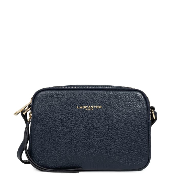 Umhängetasche DUNE von der Marke Lancaster, entworfen für Ausflüge, Büros und Reisen. Diese schicke und moderne Tasche ist 20 x 14 x 6 cm groß und verfügt über ein Polyesterfutter. Das Oberteil und das Oberteil sind aus navyblau genarbtem Leder, während der Verschluss und der Reißverschluss in Gold sind. Das Logo "LANCASTER PARIS" ist auf der Vorderseite der Tasche in Goldbuchstaben graviert, oberhalb der Nählinie, wo es auf die obere Kante trifft. Eine kleine schwarze Kordel an den Seiten ermöglicht es, die Tasche zur Schulter oder zum Schultergurt zu tragen. Diese Tasche ist für den bequemen und sicheren Gebrauch mit Rücksicht auf Ergonomie konzipiert. -