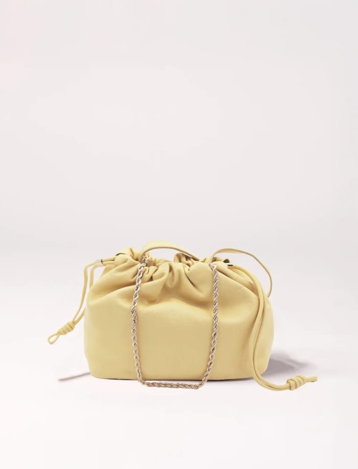 Die TESSA Umhängetasche der Marke Maradji vereint Eleganz und Modernität, um Ihre Ausflüge, Ihre Bürotage oder Ihre Reisen zu verbessern. Entworfen in einem zeitlosen Stil, zeichnet sich diese Tasche durch seine leuchtend gelbe Farbe aus, die einen Hauch von Energie und Dynamik in Ihren Look bringt. Hergestellt mit einem Baumwollfutter, garantiert es ein weiches und schützendes Interieur für Ihr Unternehmen und gewährleistet gleichzeitig eine gute Verschleißfestigkeit. Sein ergonomisches und praktisches Design macht es zu einem unverzichtbaren Accessoire für den Alltag. Die zwei verdrehten Metallketten, an der Oberseite der Tasche befestigt, ermöglichen es, bequem über die Schulter oder über den Körper zu tragen, nach Ihren Vorlieben. Die geknoteten Schnüre an den Enden verleihen einen stilvollen ästhetischen Touch und verstärken den minimalistischen und raffinierten Charme dieses Modells. Leicht und einfach zu tragen, verkörpert die TESSA Einfachheit und Stil, für vielseitigen Einsatz, der sich jedem Anlass anpasst. -
