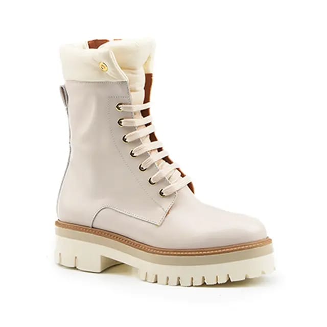 Die Stiefel Vecer der Marke Marian sind Stiefel Biker-Stil für Liebhaber der Freiheit der Straße und Mode entwickelt. Diese robusten und lässigen Stiefel sind perfekt für Motorradfahrten, aber auch für den Alltag geeignet. Das Obermaterial aus Leder und Textil bietet eine Kombination aus Komfort und Haltbarkeit. Das Lederfutter sorgt für optimalen Schutz der Füße, während die synthetische Sohle eine solide Basis für abwechslungsreiches Gelände bietet. Die Details dieser Stiefeletten sind sorgfältig auf die Bedürfnisse der Nutzer zugeschnitten. Die Leder Schnürsenkel sind verstellbar und verfügen über Metallknöpfe für eine komfortable und sichere Passform. Das Innenfutter aus Leder sorgt für zusätzlichen Schutz der Füße. Die Fersen sind 45 mm groß und bieten soliden Schutz, ohne die Flexibilität zu beeinträchtigen. Die Vecer Stiefel sind in einer einzigen Farbe erhältlich: off-white. Dieser leichte und elegante Farbton ist ideal für Modeliebhaber, die Stil und Funktionalität kombinieren wollen. Die Details dieser Stiefel, wie Leder Schnürsenkel und Kontrastnähte, verleihen ihrem Design einen Hauch von Raffinesse. Die Vecer Stiefeletten der Marke Marian sind für Benutzer konzipiert, die die Freiheit von Straße und Mode genießen. Sie sind perfekt für Motorradfahrten, aber auch für den Alltag. Ihre Kombination aus Komfort, Schutz und Stil machen sie ideal für Liebhaber der Freiheit der Straße und Mode. -