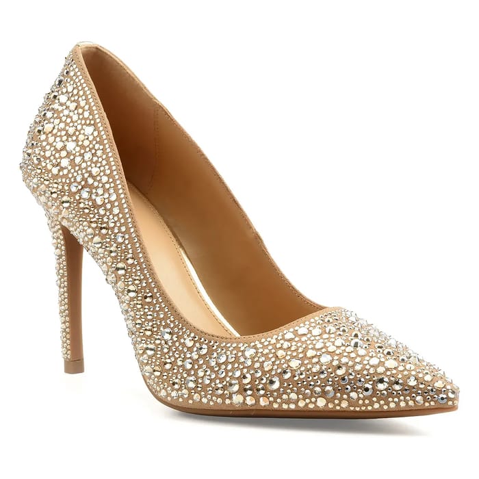 Die ALINA FLEX Pumpen von Michael Kors verbinden Eleganz und Moderne in stilvollem Design. Hergestellt in einer ordentlichen Synthetik und mit glänzenden Strasssteinen geschmückt, die das Obermaterial gleichmäßig bedecken, bieten diese Schuhe einen schicken und raffinierten Look. Der 95 mm Absatz, schlank und schlank, verleiht einen Hauch von Mode und sorgt für diskrete Stabilität. Das weiche Leder Interieur und Lederfutter bringen Komfort und Weichheit in jede Reichweite. Erhältlich in Gold, sind diese Pumpen perfekt für Partys, besondere Veranstaltungen oder ein aufwendiges Büro-Outfit. Dieses Modell verkörpert zeitgenössischen Stil mit einem Hauch von Luxus, ideal für diejenigen, die einen selbstbewussten und stilvollen Look suchen. -