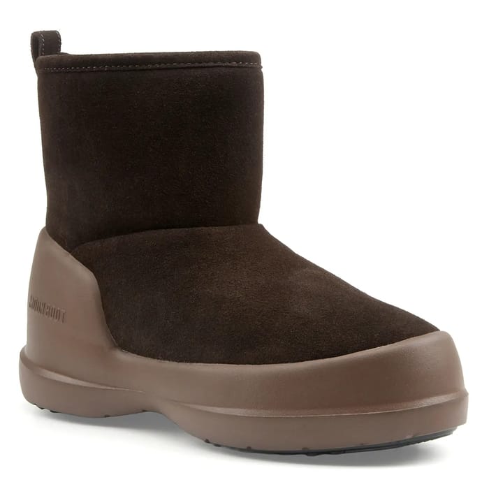 Die MB MEZZALUNA MID BOOT Schneestiefel von Moon Boot kombinieren Stil und Funktionalität für kalte Jahreszeiten. Hergestellt aus weichem braunem Samtleder bieten sie dank ihres warmen Textilfutters und der Stoffeinlegesohle dauerhafte Wärme. Das Wildlederoberteil sorgt für erhöhten Komfort beim Wetterschutz, während die Gummisohle für gute Stabilität auf Schnee und eisigen Böden sorgt. Dieses robuste und funktionale Modell ist ideal für Outdoor-Aktivitäten im Winter, mit effektivem Schutz vor Feuchtigkeit. Seine Mittelkalb Passform und Spitzenverschluss machen das Tragen einfach, während die gravierten Detail "JUICY COUTURE" bringt eine unverwechselbare Note. Ideal für schneebedeckte Ausflüge oder Winterwanderungen, verbinden diese Stiefel Wärme, Komfort und schlichte Eleganz. -