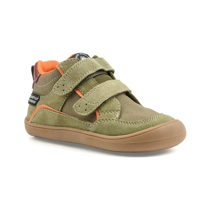 Der Kesy High Barefoot der Marke Naturino bietet einen lässigen und praktischen Stil für den Alltag. Entworfen für einfache Mobilität und optimalen Komfort, sind diese Klettverschlüsse perfekt für die Bedürfnisse von Kindern geeignet. Das textile Wildlederoberteil und der Stoff sorgen für eine weiche und angenehme Berührung der Haut. Das Textilfutter und die textile Innensohle sorgen für mehr Komfort und ein unterstützendes Tragegefühl. Die Gummisohle sorgt für guten Halt auf verschiedenen Böden. Mit einer robusten Konstruktion passen diese Schuhe in eine praktische, lässige und vielseitige Produktpalette. Mit elegantem Design und Details aus Samtleder und Stoff harmonieren sie mit einfachen und modernen Outfits. Ihre grüne Farbe evoziert eine natürliche, neutrale Atmosphäre, während die orangen Akzente an den Rändern und im Inneren eine lebendige Note verleihen. Ideal für Freizeit, Alltag und Momente einfacher Mobilität sind diese Sneaker Teil eines funktionalen und modernen Ansatzes. -