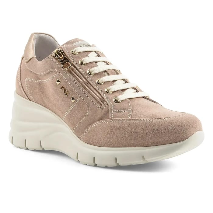 Die Nero Giardini Agosta sind Keilabsatz Sneakers, die italienische Eleganz mit Alltagskomfort verbinden. Hergestellt in einem weichen Wildleder, zeichnen sie sich durch ihre trendige rosa Farbe als unverzichtbares Modeaccessoire aus. Das Obermaterial aus Samtleder passt perfekt auf den Fuß, während das Lederinnenfutter für ein Gefühl des Wohlbefindens den ganzen Tag sorgt. Die abnehmbare Innensohle ermöglicht es, Komfort nach Vorlieben angepasst werden, und die dicke Gummiaußensohle bietet diskrete Stabilität, ohne Stil zu opfern. Der 60 mm Absatz bringt eine elegante diskrete Höhe, ideal für Ausflüge oder Freizeitmomente. Gold metallische Details schmücken das Oberteil in der Nähe der Ferse, während ein seitlicher Reißverschluss den Einstieg leicht macht. Dieses Modell, in Italien entworfen, verkörpert die Kühnheit und Raffinesse der Marke und bietet einen modernen und unverwechselbaren Look für den täglichen oder festlichen Gebrauch. -