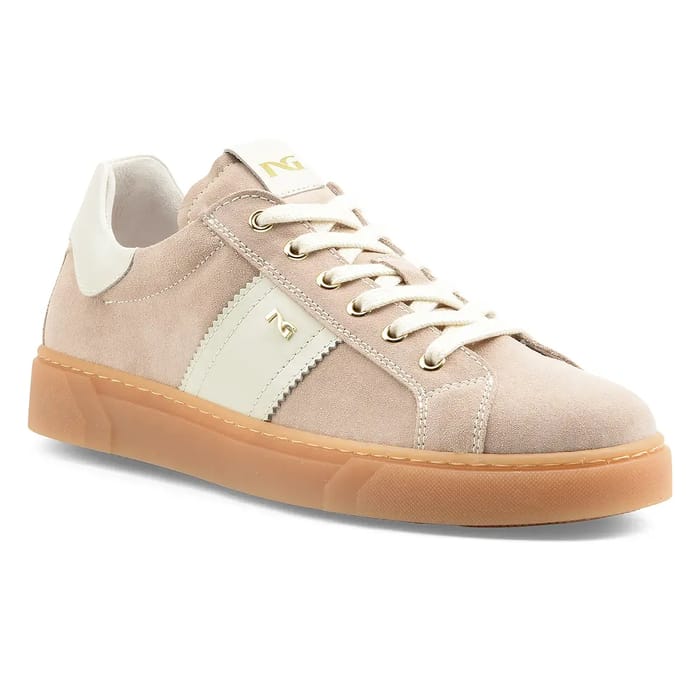 Der Nero Giardini Malaga zeichnet sich als trendiger und eleganter Schuh aus, der Komfort und durchsetzungsstarken Stil kombiniert. Gefertigt in einem weichen, geschmeidigen Wildleder, verfügen diese Samtleder Sneaker über ein pastellrosa Obermaterial, das sich perfekt mit einer cremefarbenen Gummisohle verbindet und einen Hauch von stilvollem Kontrast bietet. Das Innenfutter aus Leder sorgt für eine weiche und atmungsaktive Passform, während die abnehmbare Innensohle eine Personalisierung des Komforts ermöglicht. Der 10 mm Absatz sorgt für dezente Stabilität, ideal für den Alltag. Sorgfältige Details wie die weißen Schnürsenkel, goldene Ösen und das NG-Metall-Logo an der Seite verstärken das modische und kühne Erscheinungsbild dieses Schuhs. Entworfen für Wandern und Freizeit, ist es Teil einer durchsetzungsstarken italienischen Ästhetik, die das einzigartige Know-how der Marke Made in Italy widerspiegelt. -