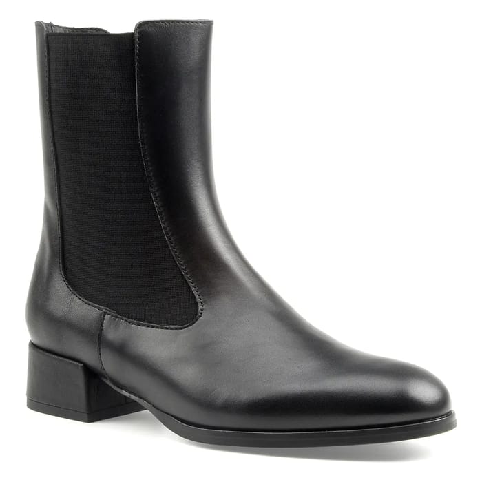 Die DELINA Stiefeletten von Odaje kombinieren Eleganz und Robustheit in einem schwarzen Ledermodell mit glatten Oberflächen und geschmeidigen Nähten. Mit einem Obermaterial aus echtem Leder, einem Innenfutter aus Leder und einer Innensohle aus Leder bieten sie den ganzen Tag lang dauerhaften Komfort. Eine elastische Zunge an der Seite macht das Anziehen leicht, während die strapazierfähige Synthetiksohle für eine gute Stabilität auf verschiedenen Oberflächen sorgt. Entworfen für Herbst und Winter, diese Stiefel sind sowohl für die Arbeit und Outdoor-Aktivitäten geeignet. Ihr elegantes Design macht sie geeignet für lässige oder semi-formale Verwendung, mit besonderem Augenmerk auf Fußstütze und Schutz. -