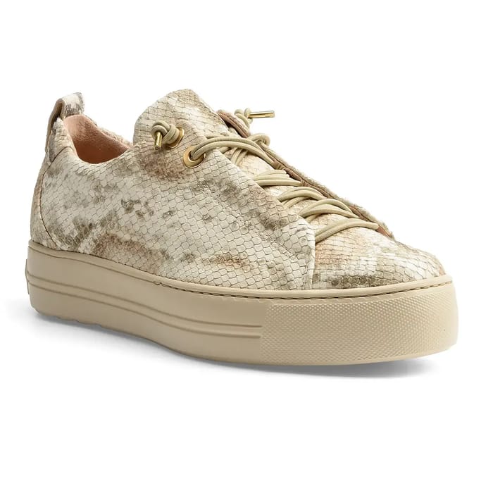 Die Paul Green 5317 Sneaker kombinieren zeitlose Eleganz mit kühnem Stil, um Ihre Alltagsoutfits zu verbessern. Entworfen in einem reptil bedruckten Leder mit beige und hellbraunen Farbtönen, erfassen sie die Essenz von diskretem Luxus, während sie zugänglich bleiben. Das Lederfutter und die Lederinnensohle sorgen für optimalen Komfort auch nach langen Verschleissstunden, während die Gummiaußensohle für mehr Stabilität beim sanften Gehen sorgt, egal ob in der Stadt oder in der Freizeit. Sorgfältige Details wie die goldenen Ösen und die kleine Schlaufe am Fersenrücken verleihen diesem vielseitigen Modell einen stilvollen Touch. Made in Europe, diese Sneakers verkörpern die handwerkliche Exzellenz der Marke Paul Green und kombinieren Qualität und Komfort für eine perfekte Passform auf einer täglichen Basis. Ideal für Fashion-Liebhaber auf der Suche nach stilvollen, aber zeitlosen Stücken. -