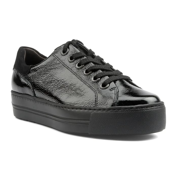 Die Paul Green 5320 Sneakers sind elegante und komfortable Schuhe, die Frauen täglich begleiten. Das Obermaterial und das Obermaterial aus Lackleder bieten einen Hauch von Raffinesse, während die Innensohle aus Leder für optimale Weichheit und Flexibilität sorgt. Gummisohlen sorgen für eine starke Basis und Haltbarkeit. Zu den hochwertigen Details dieser Sneakers gehören ein Lackleder Sneaker, Metall Schnürsenkel und Ösen für eine genaue Passform. Die schwarze Farbe ist eine klassische und vielseitige Option, die zu allen Arten von Kleidung passt. Entworfen für Mode und Komfort, sind die Paul Green 5320 Sneaker ideal für Ausflüge, Spaziergänge oder Freizeit. -
