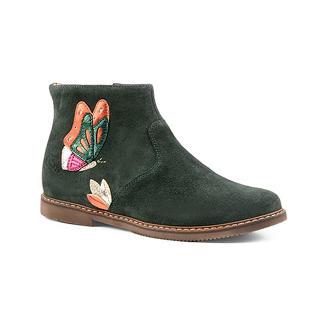 Die City Fly Stiefeletten der Marke Pom d'api vereinen Eleganz und Komfort in einem Stadtmodell, das sich perfekt für den Alltag eignet. Hergestellt aus hochwertigem khaki Samtleder, bieten sie einen weichen und warmen Look, der durch eine dekorative Schmetterlingsstickerei an der Seite verstärkt wird. Dieses geprägte Detail, mit hellen Orange-, Rosa- und Weißtönen, wird sorgfältig für eine einzigartige künstlerische Note genäht. Die braune Gummisohle, mit einer Naht sichtbar um den Umfang, sorgt für diskrete Stabilität und bringt einen Hauch von Charakter in das Design. Der Lederinnenraum sorgt für optimalen Komfort den ganzen Tag über, während die Wildleder-Ober- und Flachabsatz-Konstruktion es einfach macht, sich in lässige sowie stilvolle Outfits zu integrieren. Ideal für Arbeiten, Ausflüge oder Momente in der Stadt, zeichnen sich diese Stiefel als stilvoller Verbündeter für einen Stil aus, der sowohl schützend als auch elegant ist. -
