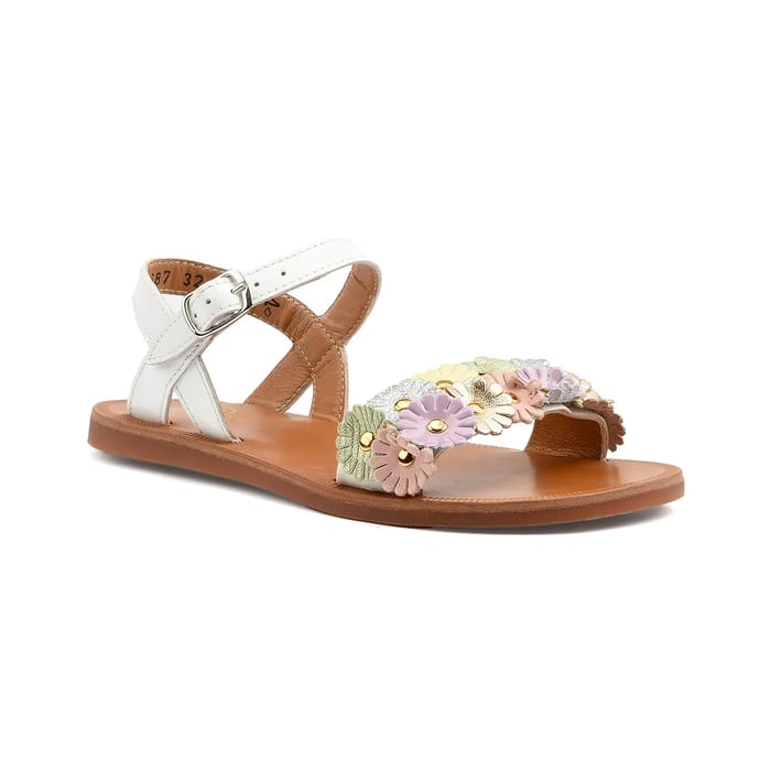 Entdecken Sie die Pom d'api Multi Flo Pads, lässige und sommerliche flache Sandalen par excellence. Aus hochwertigem Leder gefertigt, bieten diese Sandalen außergewöhnlichen Komfort und Atmungsaktivität. Ihre Gummisohle sorgt für unvergleichliche Leichtigkeit und Flexibilität, während das Lederfutter einen Hauch von Raffinesse bringt. Die Multi Flo Pads sind in einer Palette von bunten Farben erhältlich, von Pastellfarben bis hin zu helleren Tönen. Die Designdetails sind sorgfältig gearbeitet, mit Lederblumen, die den vorderen Teil der Sandale schmücken. Jede dieser Blüten hat eine goldene Mitte und ist in Pastelltönen, wie Rosa, Grün, Gelb und Silber gemalt. Die Multi Flo Beaches sind ideal für Sommerabende, egal ob es sich um einen Tag am Strand oder einen Kurzurlaub im Urlaub handelt. Sie sind auch perfekt für den Alltag, bietet einen Hauch von Mode und Raffinesse zu Ihrem Look. Die Multi Flo Pads sind in verschiedenen Größen erhältlich, von denen die Größe 32 innerhalb der Sandale sichtbar ist. Die mehrfachen Streifen, die den Fuß bedecken, bieten zusätzliche Unterstützung und Verstellbarkeit für optimalen Komfort. Die Pom d'api Multi Flo Pads sind eine intelligente Wahl für diejenigen, die einen lässigen, sommerlichen Stil suchen, während sie mit einem gepflegten Design und hochwertigen Materialien ausgestattet sind. -