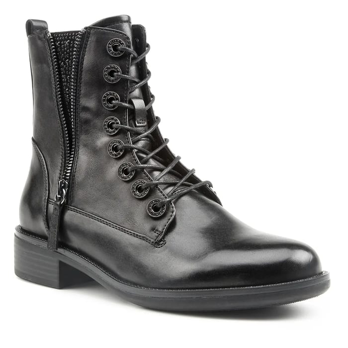 Roxana-49, Stiefel aus Leder der Marke Regarde le ciel, sind für Liebhaber der Freiheit der Straße konzipiert. Diese robusten und lässigen Stiefel sind ideal für Motorradfahrten oder für Tage, wenn Sie sich frei und fit fühlen möchten. Ihr dickes, robustes Leder sorgt für optimalen Schutz und Komfort, während ihr warmes Textilfutter Ihre Füße auch an kühlen Tagen warm hält. Die Details dieser Stiefeletten sind sorgfältig auf Ihre Bedürfnisse zugeschnitten. Die Lederseite Tab macht es einfach, verkleiden sich, während Metallösen und runde Schnürsenkel fügen einen Hauch von Stil. Der niedrige Absatz und die glatte Spitzenkappe verleihen diesen Stiefeletten einen sportlichen und eleganten Look. Die strapazierfähige, leichte Synthetiksohle sorgt für hervorragenden Halt auf gewundenen Straßen, während verstärkte Nähte entlang der Seiten und der oberen Kante einen Hauch von Stärke verleihen. Die Roxana-49 sind in schwarz erhältlich, eine klassische und elegante Farbe, die zu allen Stilen passt. Diese Stiefel sind perfekt für Motorradliebhaber, aber auch für diejenigen, die sich jeden Tag frei und fit fühlen möchten. -