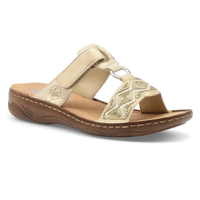 Die Rieker 2864 Maultiere verbinden Eleganz und Komfort für ganze Tage, ideal für den Alltag oder Sommerausflüge. Entworfen aus strapazierfähigem Synthetik, passen sie dank ihrer Leichtigkeit und Flexibilität, der Signatur der Marke, perfekt in die Form des Fußes. Ihre textile Innensohle bietet extra Weichheit, während die synthetische 30 mm hohe Außensohle für eine optimale Dämpfung beim glatten Gehen sorgt. Das synthetische Futter sorgt für gute Belüftung, perfekt für heiße Tage. Ihr zeitloser Stil, geprägt von einer subtilen goldenen Note, passt ebenso in ein lässiges Outfit wie in einen dressierteren Look. Diese Maultiere verkörpern die perfekte Balance aus Funktionalität und Raffinesse und spiegeln das Engagement von Rieker für hochwertige Schuhe wider, die für das tägliche Wohlbefinden entwickelt wurden. -