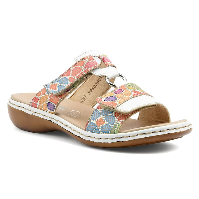 Entdecken Sie das Maultier Rieker 659X6, ein lässiges und komfortables Modell für Ausflüge und jeden Tag. Dieser Schuh wurde entworfen, um ein einzigartiges Gefühl von Komfort zu bieten, mit einem Textilfutter und Ledersohle. Oben und Oben sind aus Synthetik und Leder gefertigt und bieten eine Kombination aus Flexibilität und Haltbarkeit. Die Sohle ist aus Synthetik gefertigt und sorgt für Leichtigkeit und leichtes Tragen. Das Maultier 659X6 ist in mehreren Farben erhältlich, mit bunten geometrischen Mustern auf der Zunge, in orange, blau, lila und grün, sowie weißen Akzenten. Der vordere Schnallenverschluss ermöglicht eine einfache Verstellbarkeit. Dieser Schuh ist ideal für den Sommer, mit einem 25 mm Absatz und einer synthetischen Sohle für ein Gefühl von Komfort und Leichtigkeit. Das Rieker 659X6 Maultier ist eine perfekte Wahl für Ausflüge und den Alltag und bietet eine Kombination aus Komfort, Mode und Flexibilität. -