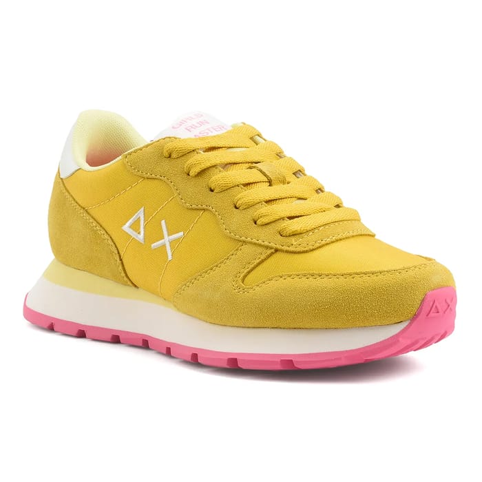 Die ALLY SOLID NYLON Sneaker der Marke Sun68 sind für Liebhaber von Mode und Komfort konzipiert. Diese robusten und vielseitigen Schuhe eignen sich perfekt für Alltag, Wandern oder Freizeit. Ihre textilen Wildlederober- und -oberteile sorgen für außergewöhnliche Weichheit und Flexibilität. Das textile Futter sorgt für optimale Belüftung und kontrollierte Luftfeuchtigkeit. Abnehmbare textile Einlegesohlen bieten zusätzliche Anpassungsfähigkeit und Anpassungsfähigkeit. Synthetische Sohlen sorgen für Haltbarkeit und Verschleißfestigkeit. Die Fersen messen 30 mm und bieten Leichtigkeit und Bewegungsfreiheit. Details des Schuhs sind ein Samt und Textilleder, die einen Hauch von Raffinesse und Stil. Die gelbe Farbe ist ein Hauch von Frische und Freude, ergänzt durch gelbe Schnürsenkel, die perfekt mit der Farbe des Schuhs verschmelzen. Das Markenlogo, bestehend aus zwei überlagerten Dreiecken, die ein "X" bilden, ist auf der Seite des Schuhs sichtbar und verleiht einen Hauch von Persönlichkeit und Stil. Die ALLY SOLID NYLON Sneaker sind daher ideal für alle, die einen bequemen, vielseitigen und modischen Schuh suchen. -