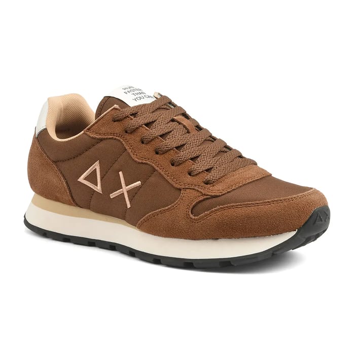 Die TOM SOLID der Marke Sun 68 sind Sneaker für Liebhaber von Mode und Komfort. Diese trendigen Schuhe sind mit einem Textil Wildleder Top und Obermaterial gefertigt und bieten ein Gefühl von Weichheit und Leichtigkeit. Das textile Futter sorgt für optimale Belüftung und kontrollierte Luftfeuchtigkeit. Abnehmbare textile Einlegesohlen ermöglichen eine Personalisierung des Komforts. Die synthetischen Sohlen sorgen für Haltbarkeit und Schlagzähigkeit. Die Fersen messen 25 mm und bieten eine ideale Höhe für einen bequemen Spaziergang. Die TOM SOLID sind in Braun erhältlich, einer neutralen und eleganten Farbe, die zu allen Stilen passt. Diese vielseitigen Schuhe eignen sich perfekt für den Alltag, zu Fuß oder in der Freizeit. Die Details dieser Turnschuhe sind sorgfältig verarbeitet, mit einem Samtleder und einem Textil, das einen Hauch von Raffinesse verleiht. Die klaren Schnürsenkel geben einen Hauch von Kontrast, während die Aufschrift "RUN FASTER DHAN YOU CAN" auf dem hinteren Etikett Mühe und Motivation fördert. Das beige Innenleben dieser Schuhe bietet einen Hauch von Kontrast zu den Außenfarben, wodurch ein angenehmer visueller Effekt entsteht. -