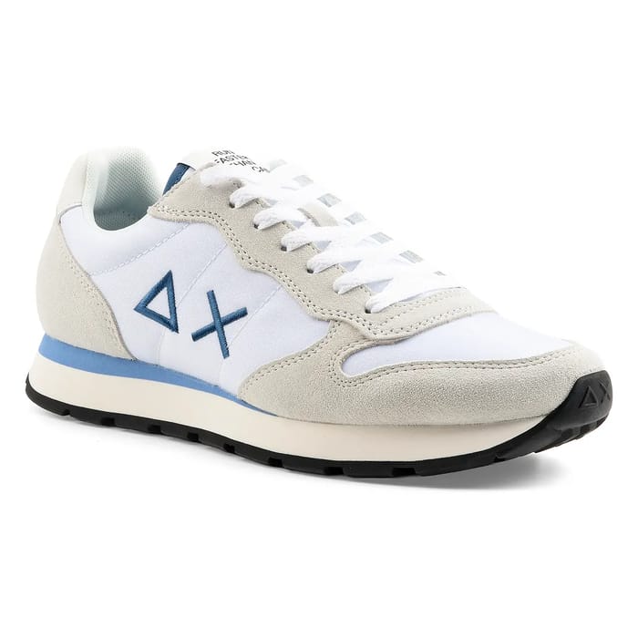 Der Sun68 TOM SOLID verkörpert die perfekte Kombination aus kühnem Stil und Alltagskomfort. Diese Sneakers, die für jeden Anlass geeignet sind, zeichnen sich durch ihr weißes Obermaterial aus Wildleder aus und kombinieren Weichheit und moderne Textur. Die leichten beigen Akzente auf Zehe und Ferse bringen einen subtilen Hauch von Raffinesse, während die blau bestickten Details, die ein dezentes Logo evozieren, die elegante Identität dieses Modells verstärken. Die weißen Schnürsenkel, in Stoffösen eingelegt, garantieren eine präzise Befestigung und optimale Passform, während ein gepolsterter Kragen für verlängerten Komfort sorgt, ideal für lange Spaziergänge oder Momente der Entspannung. Die synthetische Sohle, nüchtern und widerstandsfähig, verbindet Leichtigkeit und Haltbarkeit, perfekt für den täglichen Gebrauch oder Freizeit. Dieses vielseitige Modell, zeitlos und konsequent trendy, fügt sich in ein lässiges und urbanes Outfit ein und spiegelt den dynamischen Geist der Marke Sun68 wider. -