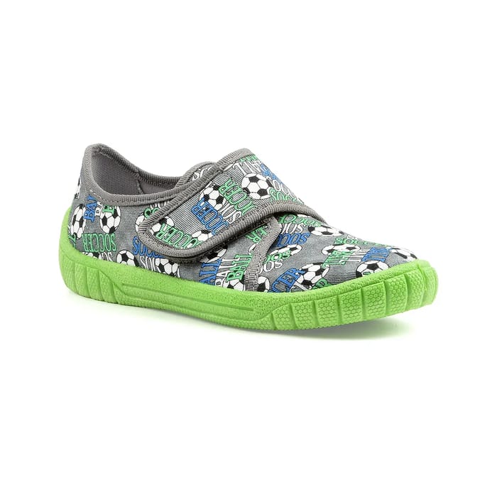 Die Superfit Pantoffeln bieten optimalen Komfort für Momente der Entspannung zu Hause, besonders geeignet für kalte Jahreszeiten. Entworfen in einem weichen Textilmaterial, verbinden sie Wärme und Flexibilität für eine angenehme Ganztagskleidung. Das graue Stofftop mit schwarz-weißen Fußballmotiven sorgt für einen modernen Twist, während die blauen Details und der grüne Text eine lebendige Note mit sich bringen. Die strapazierfähige und strukturierte Gummisohle sorgt für diskrete Stabilität, ideal für Innenfahrten. Mit einem Kratzerverschluss passen sie sich leicht an persönlichen Komfort an. Diese funktionellen und komfortablen Pantoffeln sind Teil einer Reihe für das tägliche Wohlbefinden. -