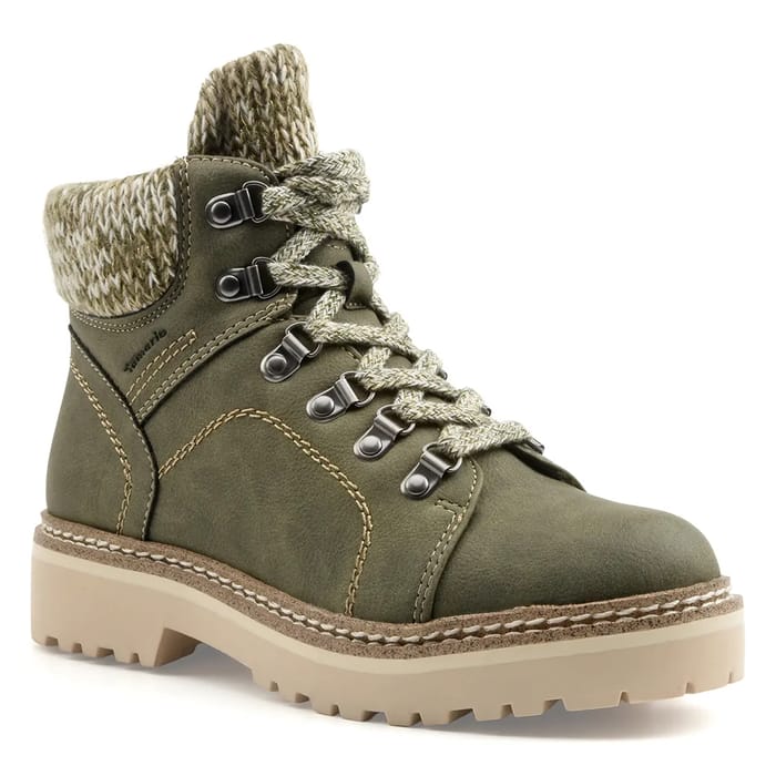 Die Adalena warmen Stiefeletten der Marke Tamaris vereinen Eleganz und Komfort auf täglicher Basis. Hergestellt aus einer Mischung aus Synthetik und Textil für einen warmen Look, verfügen sie über ein schickes, vielseitiges und komfortables Sortiment. Das warme textile Innenfutter sorgt für dauerhafte Wärme, während die abnehmbare textile Innensohle eine individuelle Passform ermöglicht. Der 40 mm Absatz bietet diskrete Stabilität, ideal für den allgemeinen Gebrauch. Das High-End-Design, in khaki Farbe, unterstreicht ein solides funktionales Erscheinungsbild mit optimaler Unterstützung und verbesserter Haltbarkeit. Diese Stiefeletten passen sich perfekt einem femininen und modernen Stil an und bieten eine ausgewogene Wahl zwischen Mode und Alltagskomfort. -