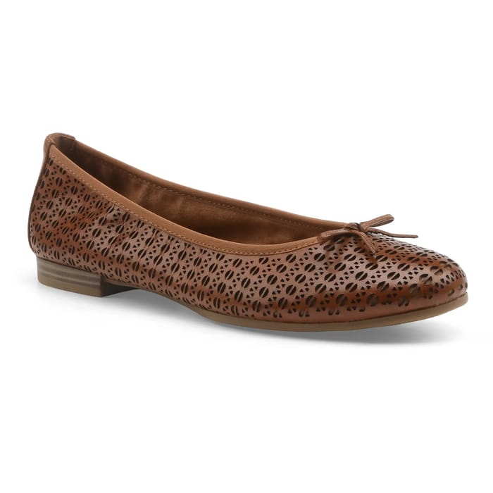 Die Alena Ballettwohnungen von Tamaris verbinden zeitlose Eleganz mit Alltagskomfort. Entworfen in Leder perforiert mit einem warmen Cognac-Ton, passen sie perfekt in die Silhouette und bringen eine raffinierte Note auf jeden Schritt. Ihre 10 mm lange Synthetiksohle sorgt für dezente Stabilität, ideal für Werktage oder lässige Ausflüge. Das Leder Interieur und Textilfutter verbessern das Wohlbefinden, während das leichte Design es zu einem Must-Have für Frauen macht, die sowohl Stil als auch Funktionalität suchen. Tamaris, gleichbedeutend mit einer perfekten Balance zwischen Chic und Zugänglichkeit, kennzeichnet hier ein vielseitiges Stück, das sich ebenso in eine professionelle Garderobe wie in einen lässigen Look integriert. Ein zeitloser Klassiker, für diejenigen, die sich weigern, zwischen Komfort und Eleganz zu wählen. -
