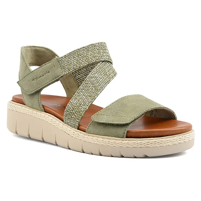 Entdecken Sie die Karlie Sandalen der Marke Tamaris, perfekt für Partys, Büros oder Zeremonien. Diese eleganten und schicken Sandalen sind so konzipiert, dass sie unvergleichliche Raffinesse und Komfort bieten. Oben und Oben sind Wildleder, während das Futter aus Textil besteht. Die Innensohle ist aus Leder gefertigt und bietet ein Gefühl von Komfort und Unterstützung. Die Laufsohle ist aus synthetischem Material gefertigt und garantiert Haltbarkeit und Verschleißfestigkeit. Die Karlie Sandalen zeichnen sich mit ihrem Samtleder-Design und stilvollen Details durch einen modischen Twist aus. Die grüne Farbe ist ein Hauch von Natur und Raffinesse. Die zwei breiten Streifen, die das Oberteil bilden, sind eine schöne Mischung aus gewebtem Stoff in grün und beige und olivgrünem Wildleder. Ein breit verstellbarer Fersenverband sorgt für eine perfekte Passform um den Knöchel. Die Innensohle ist weich und gepolstert und bietet optimalen Komfort. Die Außensohle verfügt über eine hübsche Spitze entlang seiner Kante, Hinzufügen eines Hauch von Stil zu diesen stilvollen Sandalen. Die Karlie Sandalen von Tamaris sind eine intelligente Wahl für Frauen, die eine perfekte Mischung aus Eleganz, Komfort und Mode suchen. -