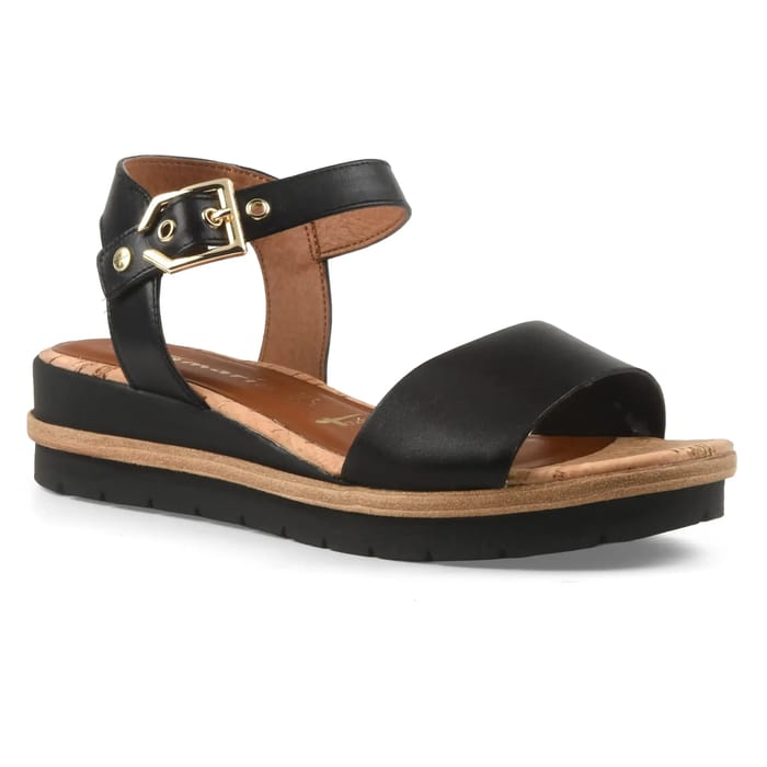 Entdecken Sie die Sandalen Mirama der Marke Tamaris, ideal für Sommertage. Aus Leder gefertigt, bieten diese flachen Sandalen außergewöhnlichen Komfort und Atmungsaktivität. Ihre Lederinnensohle sorgt für Weichheit unter dem Fuß, während die synthetische Außensohle für Haltbarkeit und Verschleißfestigkeit sorgt. Die zwei verstellbaren Lederbänder, verziert mit einem goldenen Verschluss, ermöglichen eine perfekte Befestigung am Fuß. Die 40 mm Sohle bietet eine dezente Höhe bei optimaler Stabilität. Die Mirama eignen sich perfekt für Strandtage, Feiertage oder den Alltag und sind für jeden Anlass geeignet. -