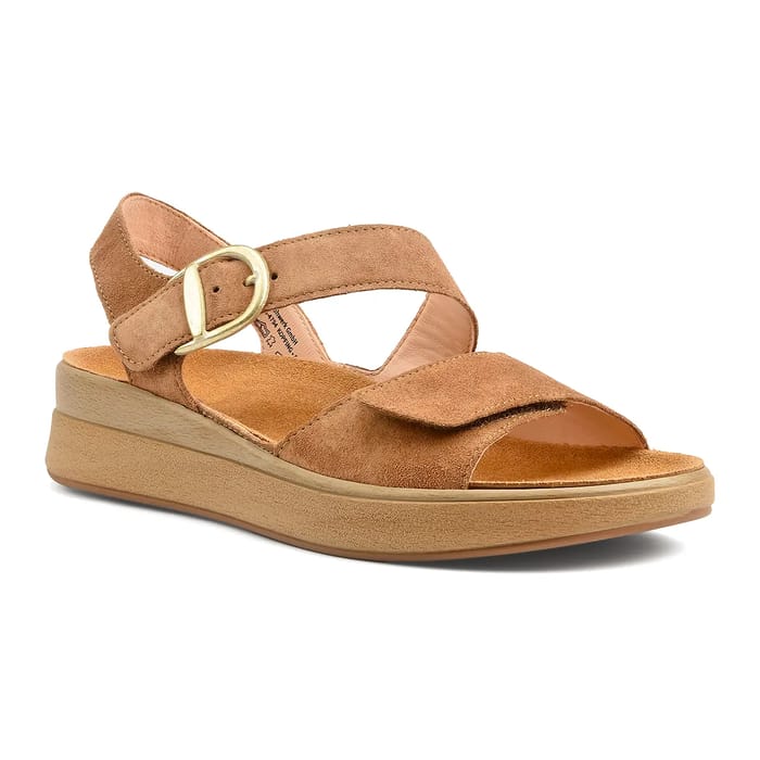 Die Meggie 251 Sandalen der Marke Think sind für einen lässigen und sommerlichen Look konzipiert. Diese flachen Sandalen sind aus chromfreiem Samtleder gefertigt und bieten einen natürlichen und eleganten Look. Das Futter aus Gemüseleder sorgt für optimalen Komfort und ist für einfache Wartung abnehmbar. Die Einlegesohle aus Gemüseleder ist ebenfalls abnehmbar, so dass der Schuh leicht zu pflegen ist. Die Eva Laufsohle garantiert optimale Leichtigkeit und Atmungsaktivität. Die Fersen messen 40 mm und bieten eine ausreichende Höhe, ohne zu übertrieben zu sein. Zu den Details des Schuhs gehört ein Maultier aus Samtleder, das dem Set eine elegante Note verleiht. Die Cognac-Farbe ist ideal für Feiertage oder sonnige Tage. Die Meggie 251 Sandalen sind perfekt für den Alltag, einen Urlaub oder einen Tag am Strand. -