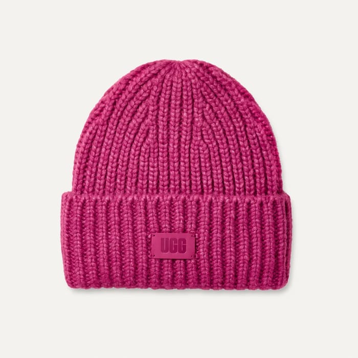 Die K's Chunky Rib Beanie von Ugg ist eine elegante und praktische Mütze für kalte Tage. Fuchsiafarben, ist diese Mütze Teil einer funktionalen und entspannten Auswahl, ideal für Outdoor-Aktivitäten oder Ausflüge im Winter. Mit einem rippgemusterten Mesh-Texturgewebe sorgt es für optimalen Komfort und bietet gleichzeitig effektiven Schutz vor Kälte. Die Eleganz des Designs spiegelt sich in dem doppellagigen elastischen Band an der Vorderseite wider, das perfekt zur Halsgröße passt. Auf der Vorderseite der Kopfbedeckung ist ein emblematischer Lederpatch mit dem UGG-Markennamen in Großbuchstaben angebracht, der einen trendigen und ikonischen Look verleiht. Diese Mütze verbindet Wärme, Stil und Funktionalität und bietet ein Gefühl von Weichheit und sofortigen Komfort. Es wird angenommen, um jeden Tag getragen zu werden, ob es ein Stadtspaziergang oder eine Outdoor-Aktivität ist. -