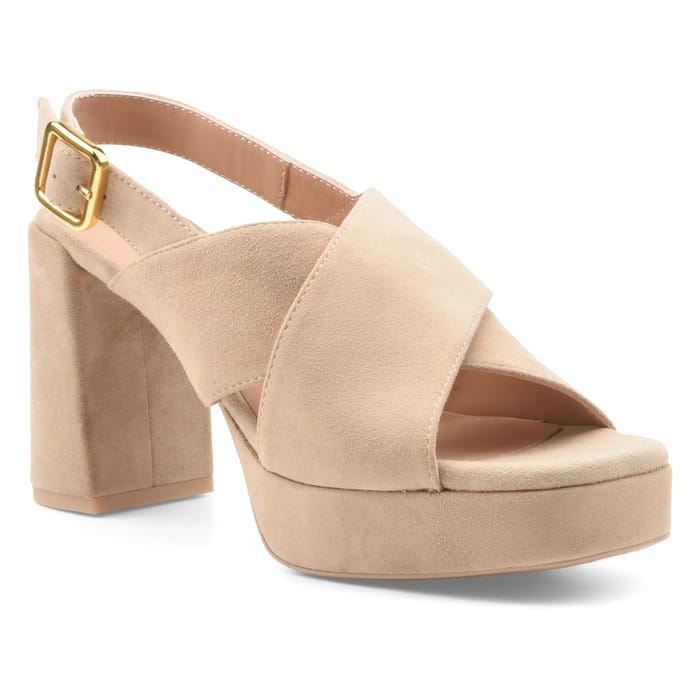 Diese Sandalen OCLE der Marke Unisa kombinieren Eleganz und Eleganz, um Ihre anspruchsvollsten Outfits zu sublimieren. Entworfen in einem seidigen und weichen Wildleder, passen sie perfekt in die Form des Fußes und bieten gleichzeitig eine optimale Unterstützung. Das Lederfutter und die Innensohle aus Leder sorgen für dauerhaften Komfort, auch wenn sie über längere Zeit getragen werden, während die dicke Kunststoffaußensohle für diskrete Stabilität sorgt. Der 85 mm Absatz bringt einen Hauch von Kühnheit und Reiz, ideal für Abende, besondere Anlässe oder Bürotage, in denen Eleganz vorherrscht. Der einzigartige Riemen, verziert mit einer goldenen Schnalle, sichert den Fuß sanft, ohne Kompromisse im Stil, und die warme beige Farbton integriert sich mit dank einer breiten Palette von Kleidung. Perfekt für vielseitigen Tragekomfort geeignet, verkörpern diese Sandalen aus Samtleder die Balance von Raffinesse und Praktikabilität. -