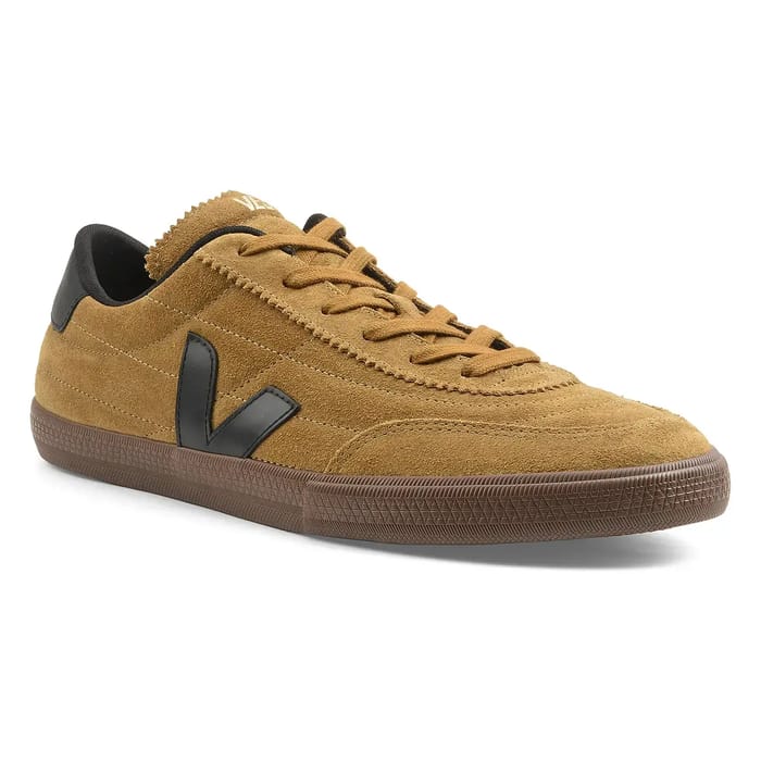 Der Panenka Sneaker von Veja vereint Stil und Alltagskomfort. Gefertigt in einem hochwertigen Cognac Wildleder, ist es mit Details aus Samtleder und feinen Nähten geschmückt, die sein elegantes Design hervorheben. Die texturierte Gummisohle, in einem dunklen Braunton, sorgt für dezente Stabilität und ergänzt gleichzeitig die nüchterne und trendige Ästhetik des Schuhs. Mit einem weichen Wildleder-Ober- und Textilfutter bietet es ein leichtes und angenehmes Tragegefühl für alltägliche Ausflüge, Spaziergänge oder Freizeitmomente. Sein elegantes Design, mit hellbraunen Schnürsenkeln und Nähten, sowie das V-förmige Logo V an der Seite, macht es besonders vielseitig. Hergestellt in Brasilien nach ethischen und ökologischen Prinzipien, ist dieser Sneaker eines der wesentlichen Elemente nachhaltiger Mode. Die 2005 gegründete Marke Veja verkörpert einen zeitlosen Casual Style, modern und verantwortungsvoll. -