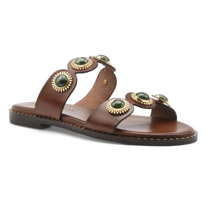 Andrea Puccini's Irene mules combine timeless elegance with bold details for a decidedly feminine style. Designed in carefully selected leather, these mules stand out for their leather uppers enhanced with jewelry inserts, where generous green stones encased in a golden metal bring a touch of luxury and sophistication. The equally stylish leather lining and insole ensure optimal comfort for extended wear, while the synthetic outsole ensures discreet stability. With a heel of 10 mm, these mules gracefully combine practicality and refinement, ideal for summer outings as for moments of relaxation in everyday life. The sleek design, marked by meticulous stitching finishes, reflects the artisanal expertise of Andrea Puccini, a brand that marries contemporary trends with Italian craftsmanship. Perfect for those looking for a balance between style and comfort, Irene mules stand out as an essential piece to sublimate every outfit, summer as well as everyday. -
