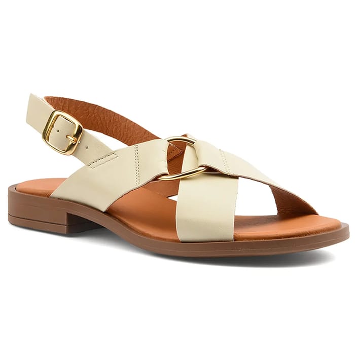 Ludmila, flat sandals by Andrea Sabatini, are a perfect choice for summer days. Designed for casual style, these ecru leather sandals are ideal for beach, holiday or even everyday wear. The leather lining and leather insole provide optimal comfort while keeping feet breathable. The crispcrossing straps on the foot add a bold touch, while the synthetic sole ensures lightness and flexibility. The 15 mm heel is perfectly suited for summer use. The adjustable handle at the neckline with a golden padlock completes this elegant design. The Ludmila are a trendy choice for women who love fashion at fair prices, offering both style, comfort and a touch of boldness. -