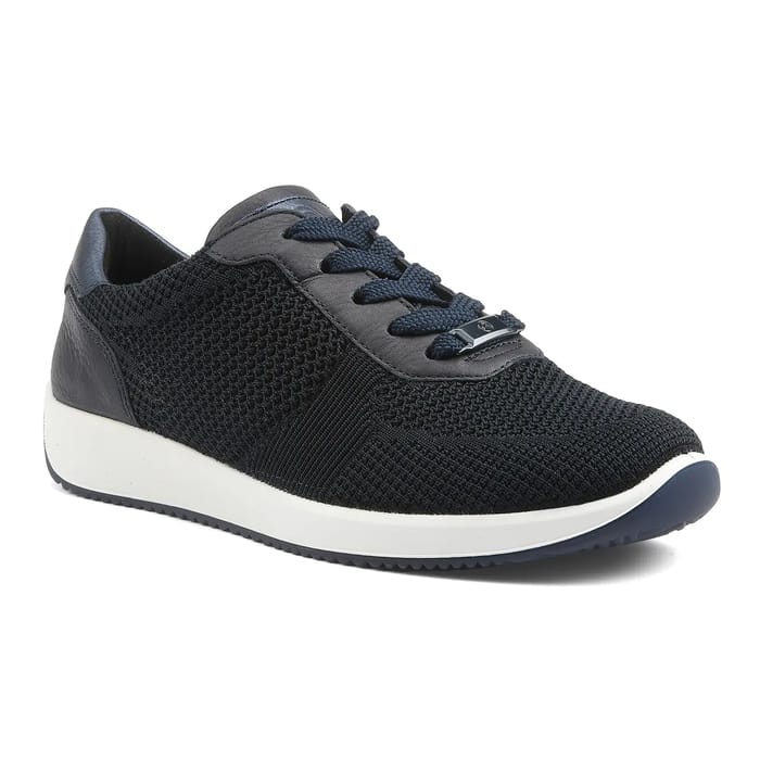 The Low sneakers Lissabon 4.0 from Ara are designed for fashion lovers who appreciate comfort and versatility. These trendy shoes feature a textile and leather upper and upper, providing a perfect combination of flexibility and durability. The textile lining ensures optimal ventilation, while the textile and removable insole facilitates maintenance. The synthetic sole ensures durability and wear resistance. The Lissabon 4.0 shoes feature a 30 mm heel, ideal for daily outings or leisure activities. The shoe details, such as the textile and leather sneaker, add a touch of sophistication. The navy blue color is an elegant option for fashion lovers who want to stand out. The Low sneakers Lissabon 4.0 from Ara is designed for people who value comfort, fashion and versatility, and who want shoes that meet their daily needs. -