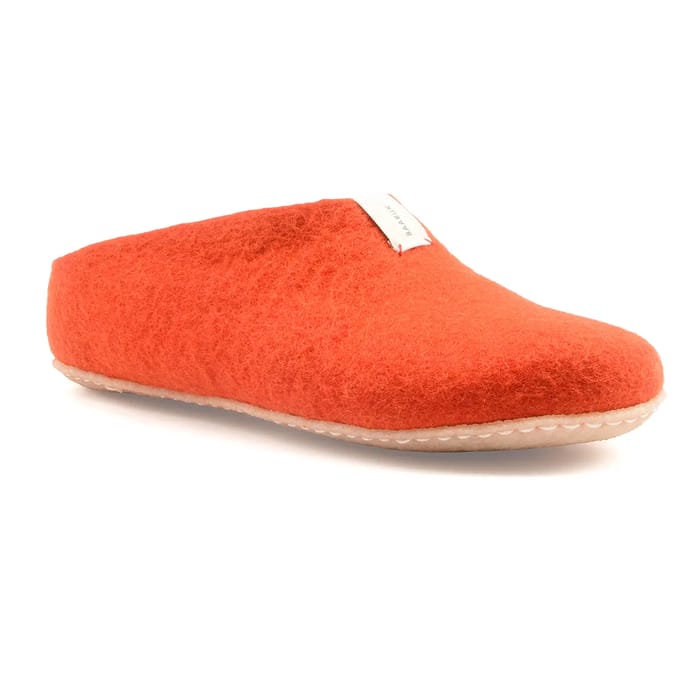 Discover the Slippers Mel from Baabuk, designed for absolute comfort throughout the winter. These functional and comfortable slippers are perfect for a relaxing at home or a moment of rest. Their felt top and upper offer exceptional softness and flexibility, while the felt lining ensures optimal thermal insulation. The wool insole is removable and easy to clean, offering great flexibility. The crepe outsole is lightweight and flexible, providing a natural walking feel. The Slippers Mel are available in a single color, red, which adds a touch of style to your outfit. With their functional and comfortable design, these slippers are ideal for cold winter moments. -