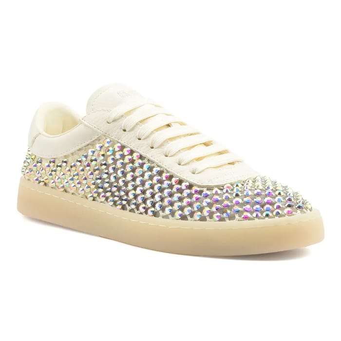 leather, textile and rhinestone sneakers