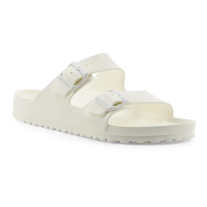 The Birkenstock Arizona Eva R embodies the perfect combination of timeless style and unparalleled comfort. Designed as lightweight and ultra-ergonomic mules, they cater to those looking for an elegant silhouette while enjoying optimal support. Their top and sole, entirely made of EVA, offer softness and breathability ideal for long summer days or moments of relaxation. The insole, also made of EVA, perfectly matches the shape of the foot for a natural fit, while the textured outsole guarantees optimal stability with every step. The iconic design of these sandals, marked by adjustable straps and metal buckles, allows for precise adjustment for a tailor-made fit. The white color, both pure and timeless, fits as well in a casual outfit as in a more dressed look. Made in Germany according to the artisan methods that make the reputation of Birkenstock, these Arizona Eva R combine heritage and modernity, for a comfort that lasts, step by step. -