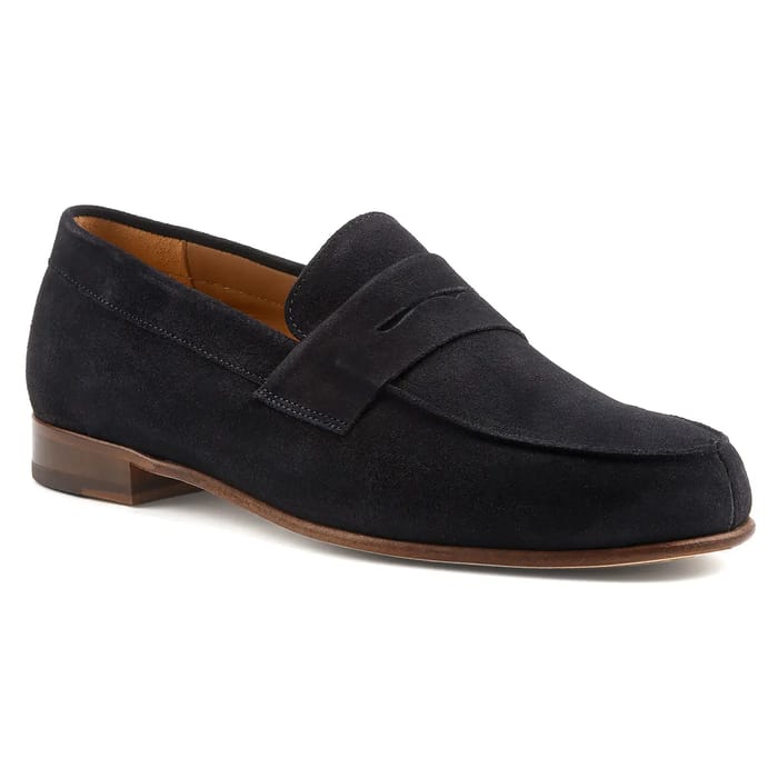 The Stanley loafers of the brand Bobbies are classic style shoes designed for formal occasions. Their top and stem are made of suede, offering a stylish and elegant appearance. The lining is made of leather, ensuring optimal comfort. The inner and outer soles are also made of leather, offering an exceptional quality of finish. The details of these loafers include a velvet leather top, adding a touch of sophistication. The navy blue color is a chic and elegant option for formal occasions. These shoes are ideal for offices, parties or events, where a stylish style is required. Their classic design and elegance make them perfect for formal occasions. -