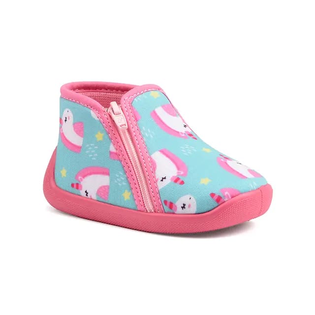 Discover the Slippers Galamo from the Bossi brand, ideal for small feet that love the imagination! These textile slippers are soft and comfortable for children's feet, while offering exceptional warmth and flexibility. Their top and upper are made of textile, while the lining is also made of textile for maximum softness. The insole is made of leather, offering superior protection and durability. The outsole is made of rubber, guaranteeing an optimal hold and durability. The Slippers Galamo are available in multicolor, with a nice unicorn design on a light blue background, adorned with small yellow stars and raindrops. The pink zippers on the sides add a finishing touch to these comfortable and functional slippers. Ideal for home, relaxation or winter, the Slippers Galamo are a perfect choice for small feet that love imagination and softness. -