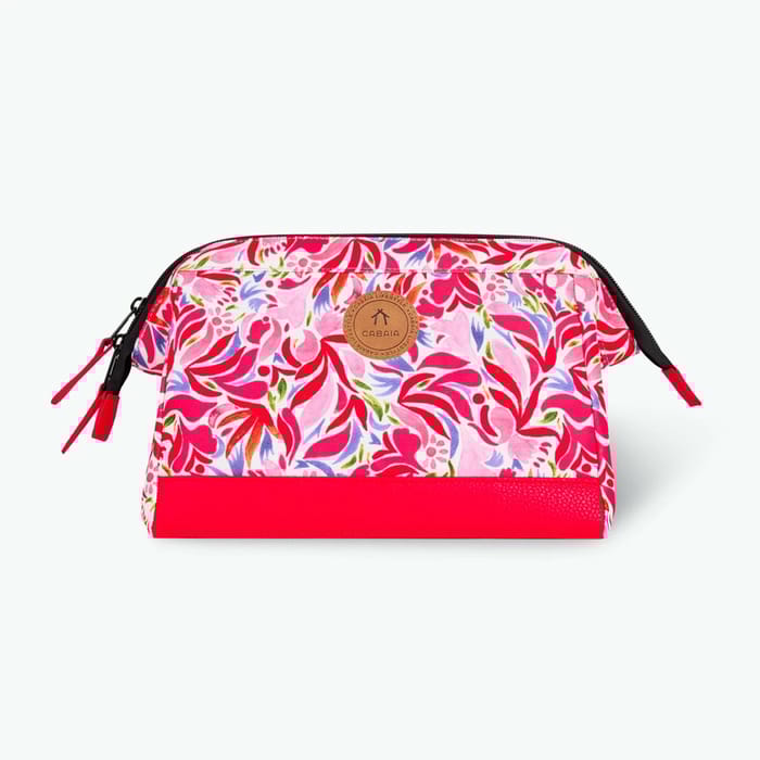 The SANTORINI toiletry kit from the Cabaia brand combines elegance and practicality to adapt to all your movements. Designed for travellers and nomadic users, this kit stands out for its vibrant floral design, where gradient patterns of pink, red and blue bloom on a white background, while a strip of bright pink adorns the bottom for a bold contrast. Its compact size and robust zipper, reinforced with black flaps and pink handles, ensure optimal protection for your business while facilitating access. Made with a 100% recycled polyester lining, this kit combines durability and respect for the environment. Ideal for travel or everyday use, it offers intelligent storage and remarkable compactness, allowing to transport your essentials without hassle. The discreet "CABAIA" logo affixed near the top adds a touch of authenticity to this product both useful and stylish. -