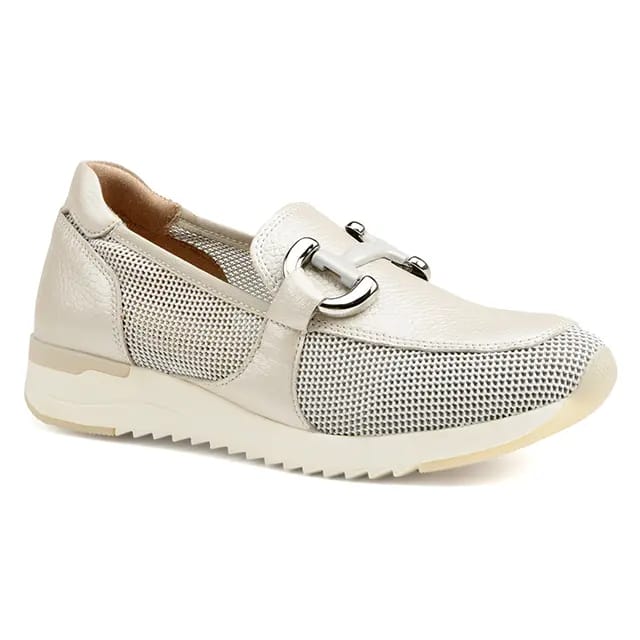 The Kaia loafers from the brand Caprice are classic style shoes designed for formal and chic occasions. Their upper and upper are made of leather and textile, offering a blend of refinement and comfort. The lining is made of textile, adding a touch of softness to the inside of the shoe. The insoles are leather and removable, facilitating the maintenance of shoes. The outsoles are made of rubber, providing strong protection and durability. The heels measure 30 mm, ideal for formal occasions. Details of the design include decorative metal hangers, giving the shoe a modern and classic look. The ecru color is ideal for formal occasions, as it is discreet and elegant. The Kaia loafers are perfect for office occasions, parties and events, as they offer a mix of style, comfort and refinement. -