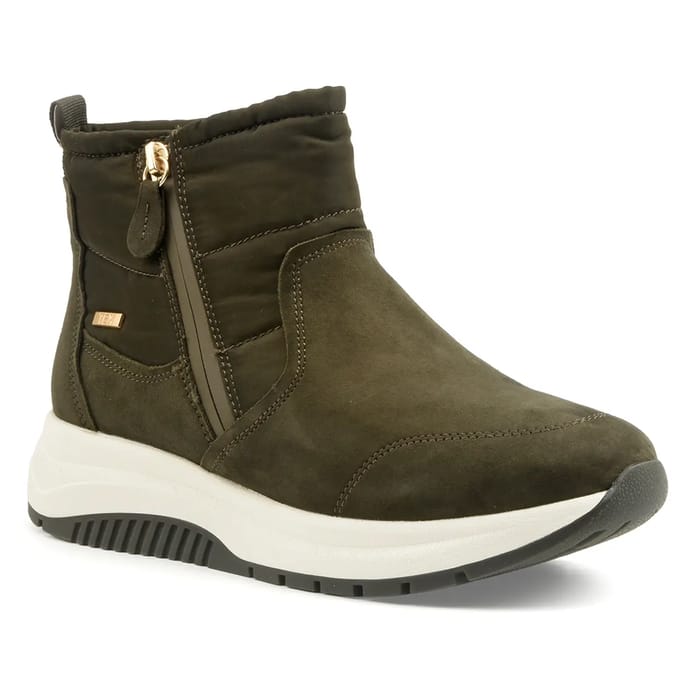 The High-top sneakers KAIA from the Caprice brand is designed for urban fashion lovers. These trendy shoes are ideal for fashion days and night outings. The top and upper are made of textile suede, offering exceptional softness and flexibility. The lining is made of warm textile and a tex membrane, ensuring optimal comfort in all seasons. The insole is also made of warm and removable textile, thus facilitating cleaning and maintenance. The rubber sole offers solid protection and versatility for everyday activities. The heel measures 10 mm, offering a slight elevation for an elegant appearance. Details of the shoe include a velvet leather and textile sneaker, adding a touch of sophistication. The khaki color is ideal for autumns and winters, offering a touch of nature and simplicity. The High-top sneakers KAIA are perfect for fashion lovers looking for a versatile and stylish shoe. -