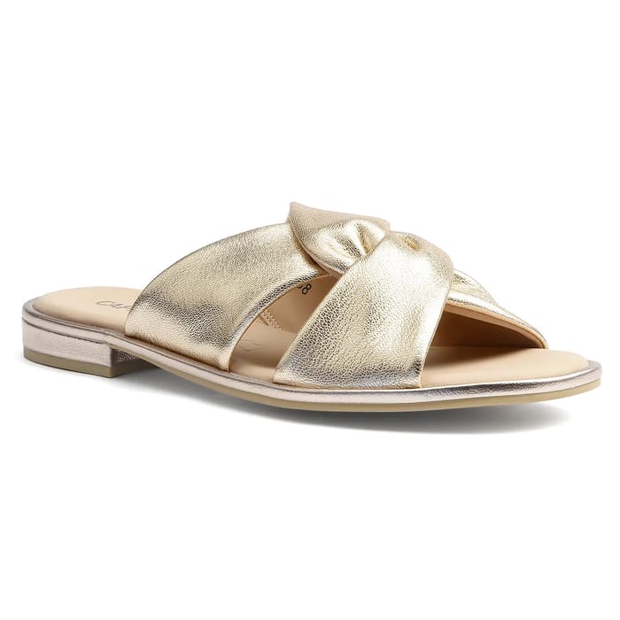 The mules Caprice Monaco are an ideal choice for outings or relaxing days in summer. Designed for optimal comfort, they feature a gold metallic leather upper, a metallic leather upper that extends into a rubber sole. The synthetic lining ensures lightness and flexibility, while the leather insole brings a touch of luxury. The mules Caprice Monaco feature a 10 mm heel, which gives them a casual look while remaining comfortable for the day. Mule details, such as the metallic leather mule, add a touch of sophistication to this model. The mules Caprice Monaco are perfect for outings, relaxing days or moments of rest in summer. -